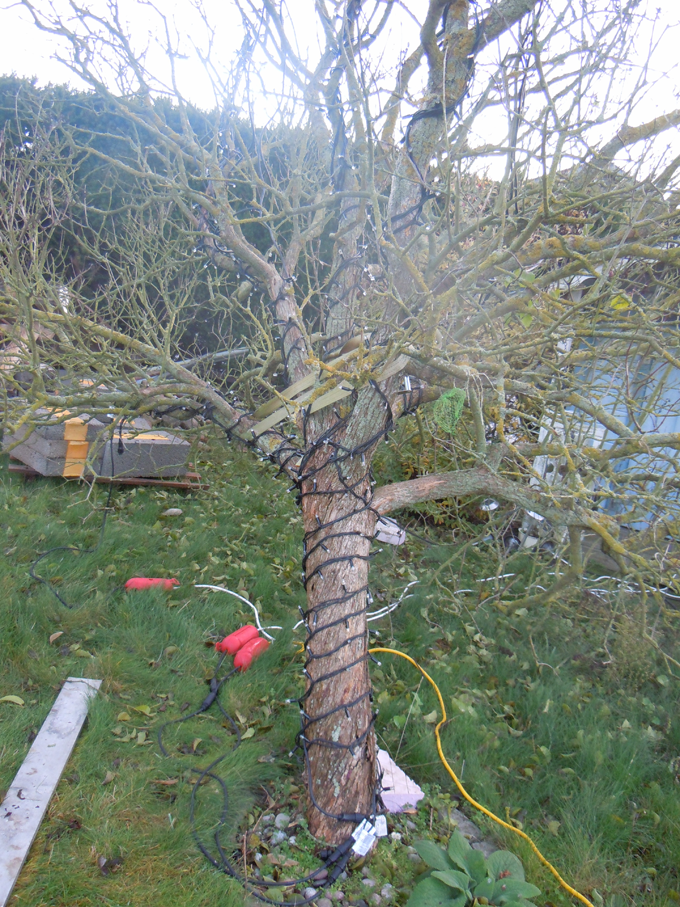 Sedan jullen 2011 har jag haft ljusslingor i färgerna Röd Grön Blå uppsatta i ett träd i våran trädgård.
